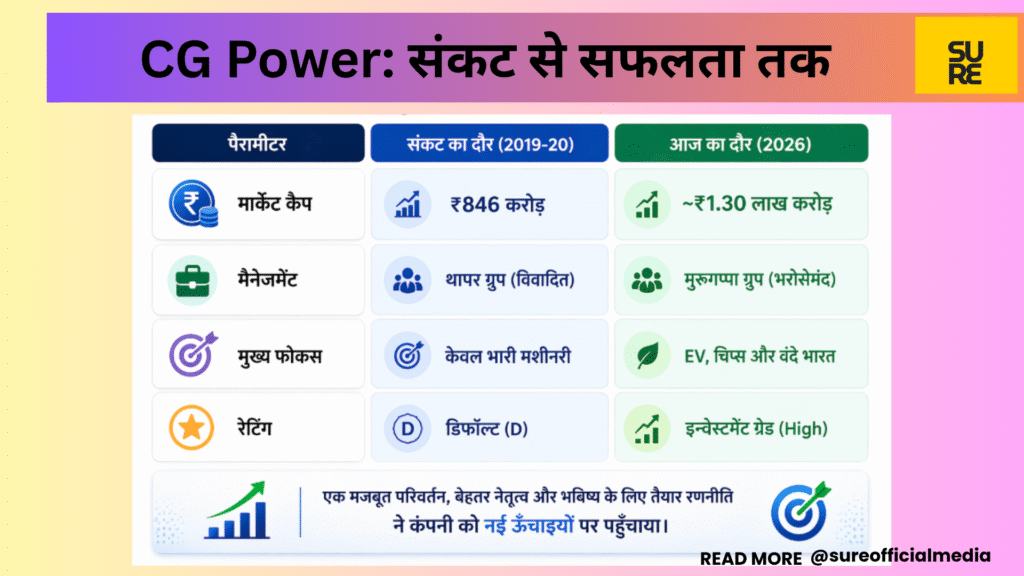 CG Power वही कंपनी है जिसका शेयर 2019-20 में सिंगल डिजिट में आ गया था, अब 800 रुपये के पार ट्रेड कर रहा है. CG Power की यह कहानी कुछ सबक देती है. वो ये कि गवर्नेंस ही असल नींव है. सही हाथों में आई कंपनी कमाल कर सकती है. मुरुगप्पा ग्रुप ने CG Power को ₹846 करोड़ मार्केट कैप में खरीदा, यह एक ऐसा दांव था जिसे तब सही नहीं कहा जा रहा था, लेकिन ग्रुप के पास न सिर्फ पूंजी थी, बल्कि एक साफ और अनुशासित संस्कृति भी थी.